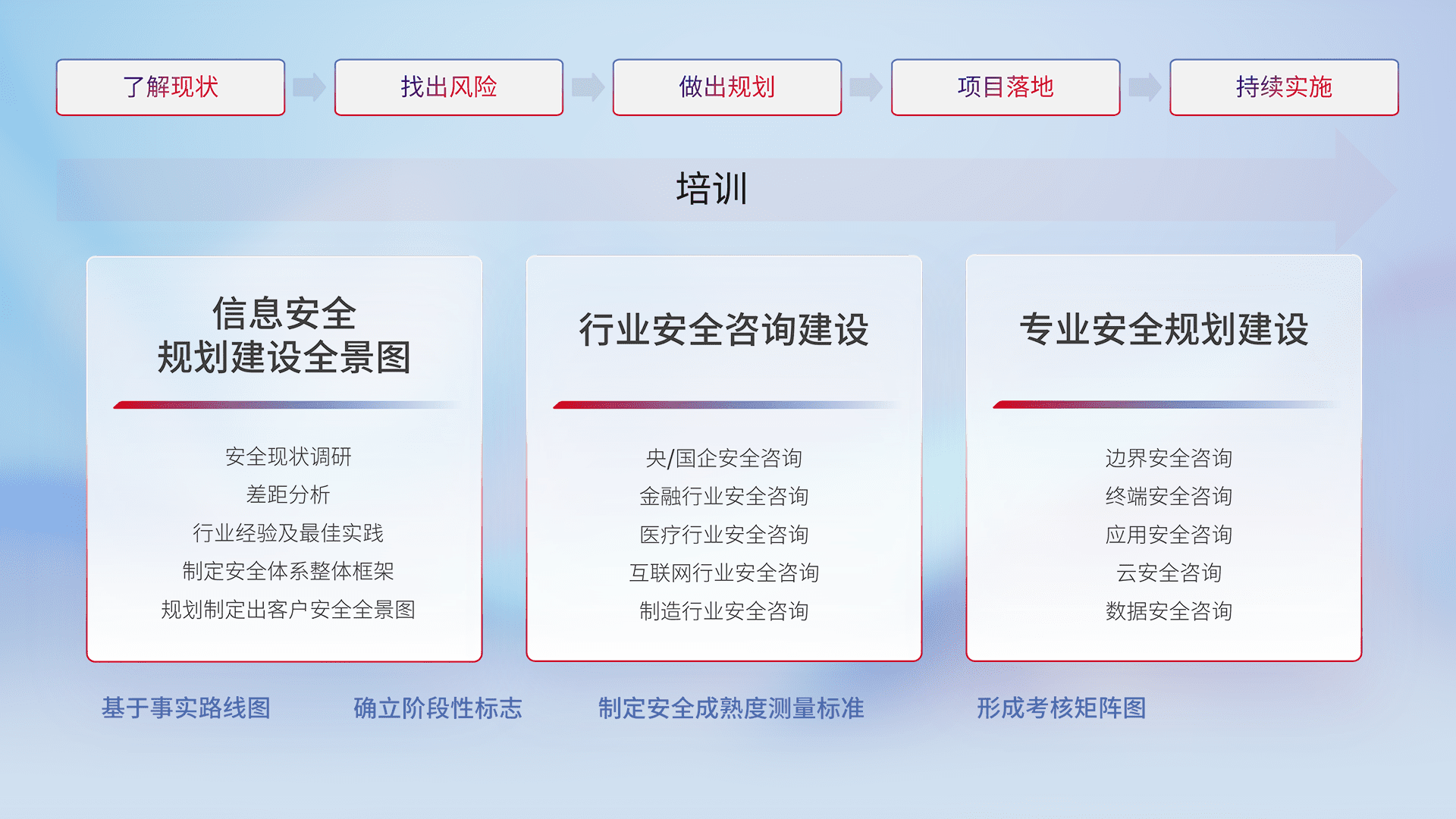 梳理客户信息安全现状调研、、、、差距分析结果,,结合行业先进经验及最佳实践,,制订客户的信息安全管控体系总结架构,,,最终形成一个完整的客户信息安全规划与建设的全景图。。